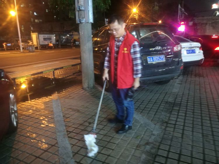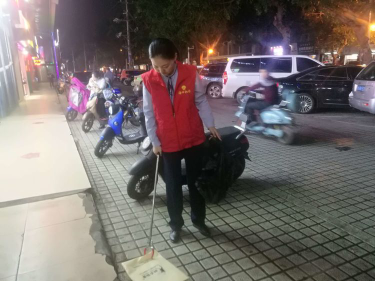志愿者们在巡查过程中,发现路面不时有烟头、纸屑、塑料袋等垃圾,市民的卫生意识较比双创期间有所下降,志愿者们及时清扫路面垃圾,同时劝导商铺做好门前卫生。