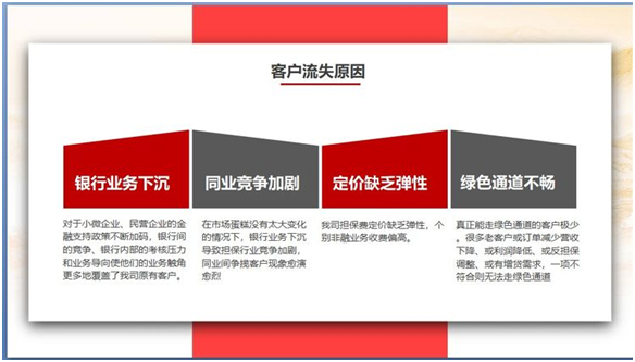 本次讲课紧紧围绕如何采取有效措施降低客户流失率的这一突出问题展开阐述,归纳总结了客户主动放弃、自然流失、竞争流失、过失流失等客户流失的类型,分析了因银行业务下沉、同业竞争加剧、担保产品不够丰富、绿色通道不畅等导致客户流失的原因。同时提出了“多、快、好、省”做好传统主业、创新普惠综合金融、向主流金融进军等解决客户流失问题的应对措施。